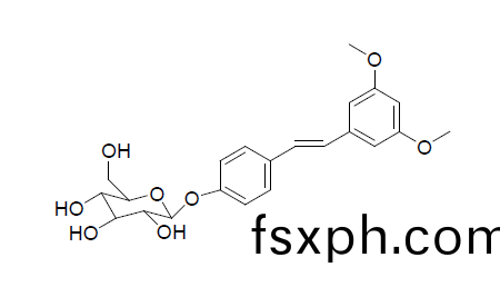 (1) High purity: Pterostilbene 4′-O-β-D-glucoside can be obtained as a high-purity product through natural extraction and refining production processes. High purity means better bioavailability and fewer adverse reactions.